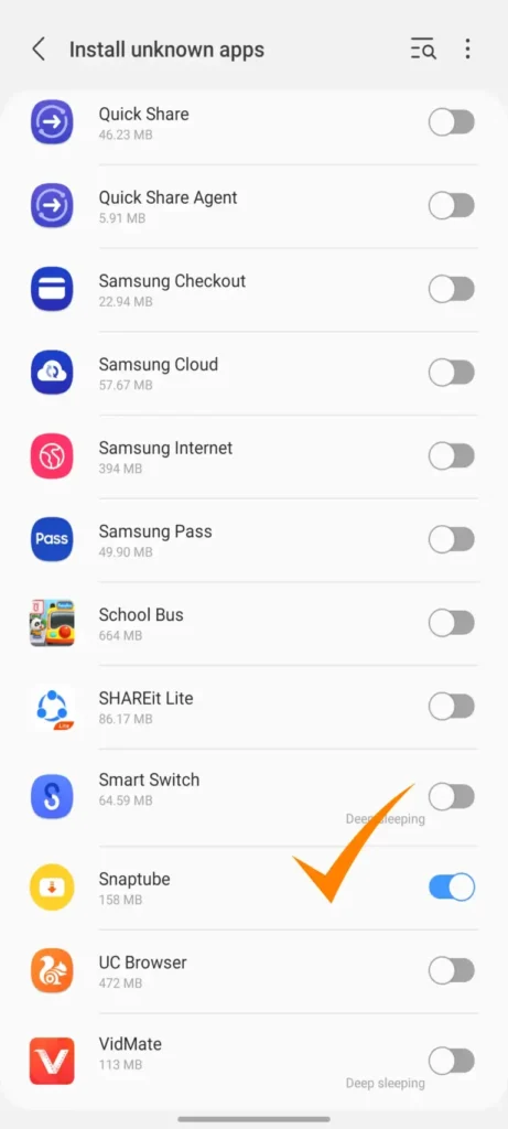 - Enable for Browser or File Manager: turn on the switch for the browser or file manager you’re using to allow installations from unknown sources.